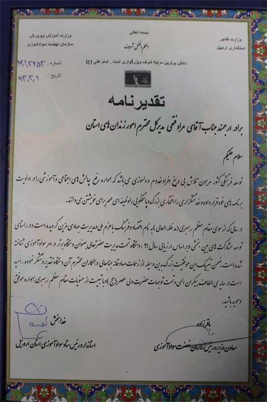 مشارکت کننده برتر در امر سواد آموزی استان اردبیل که با حضور معاون وزیر آموزش و